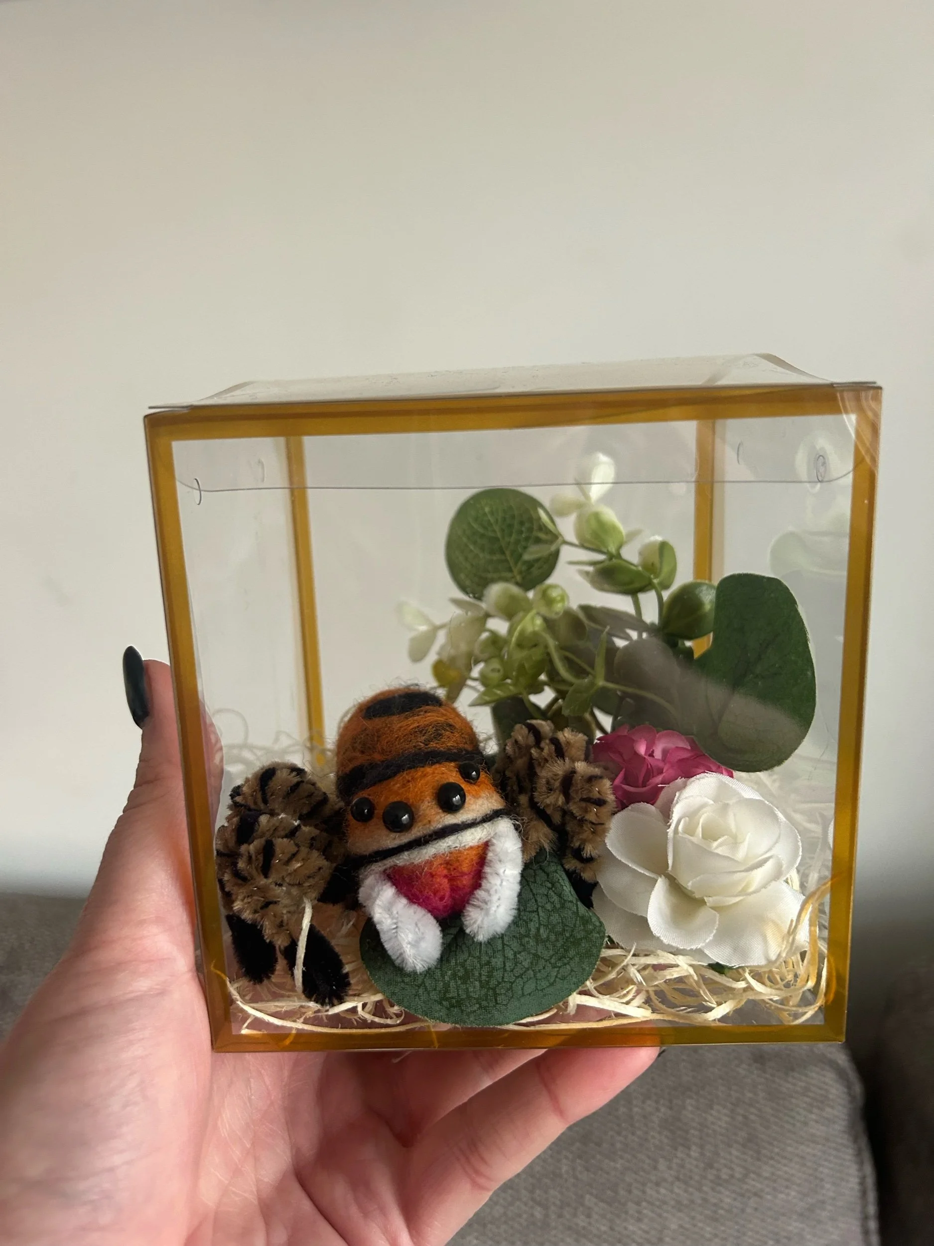 Each Spider comes with their very own, plastic faux enclosure for safe travels or to keep as part of a display if you wish!