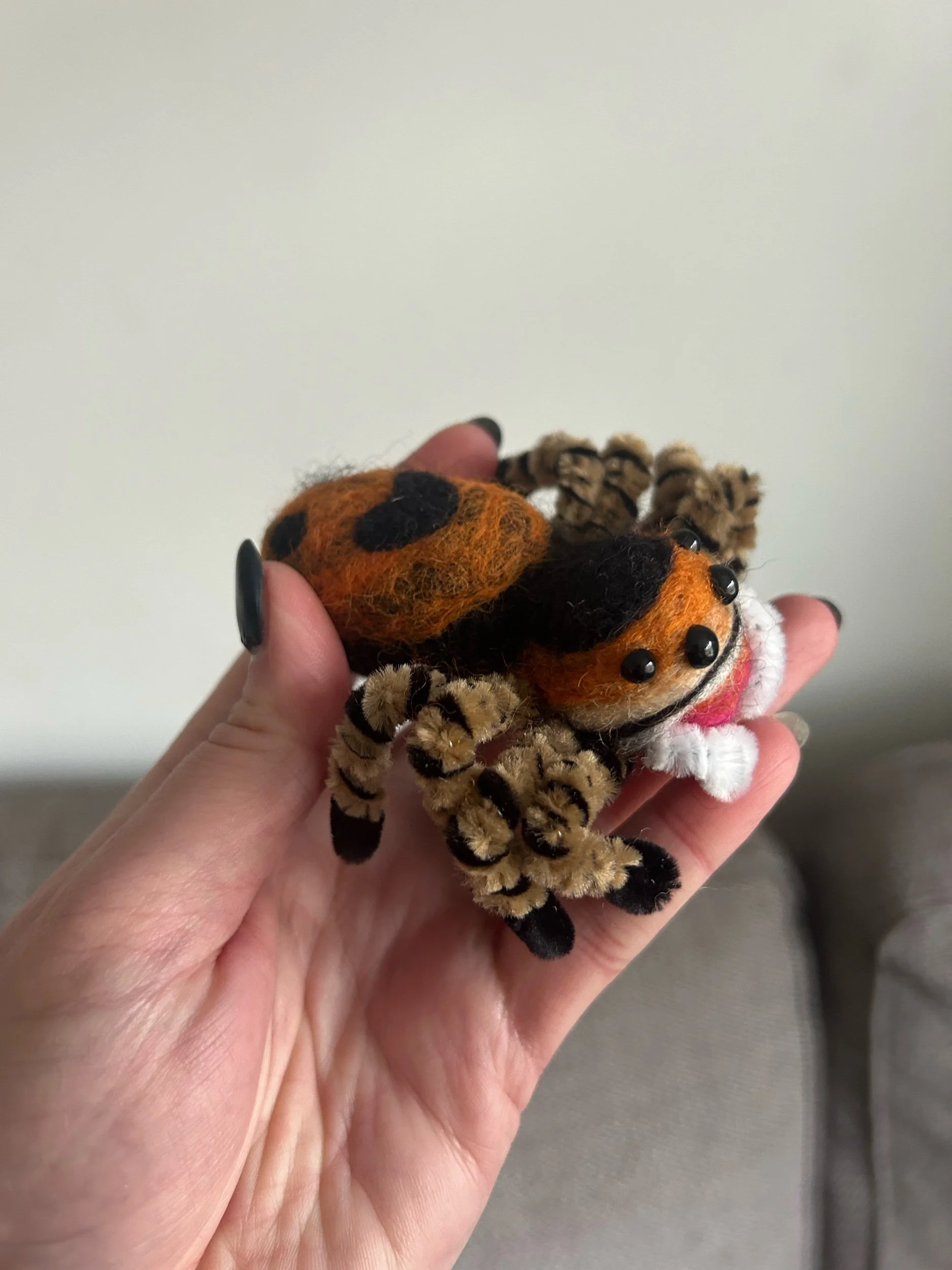 Orange/Pink Chels Felted Phidippus regius Orange Female Jumping Spider