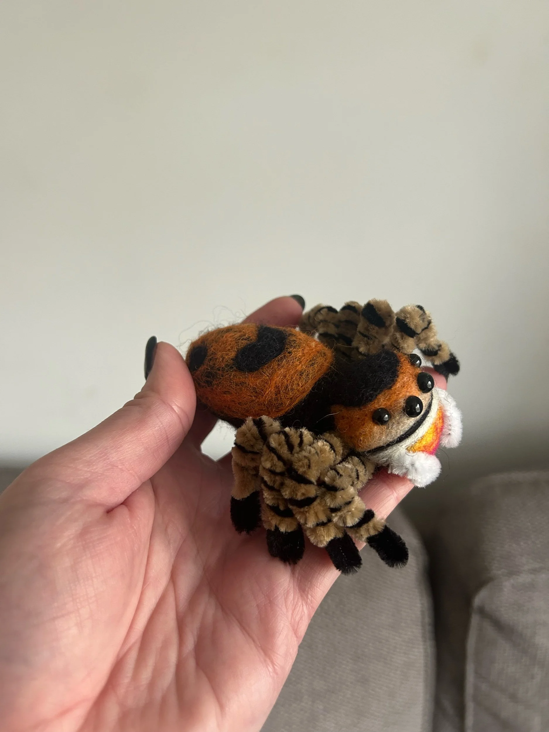 Yellow/Pink Chels Felted Phidippus regius Orange Female Jumping Spider