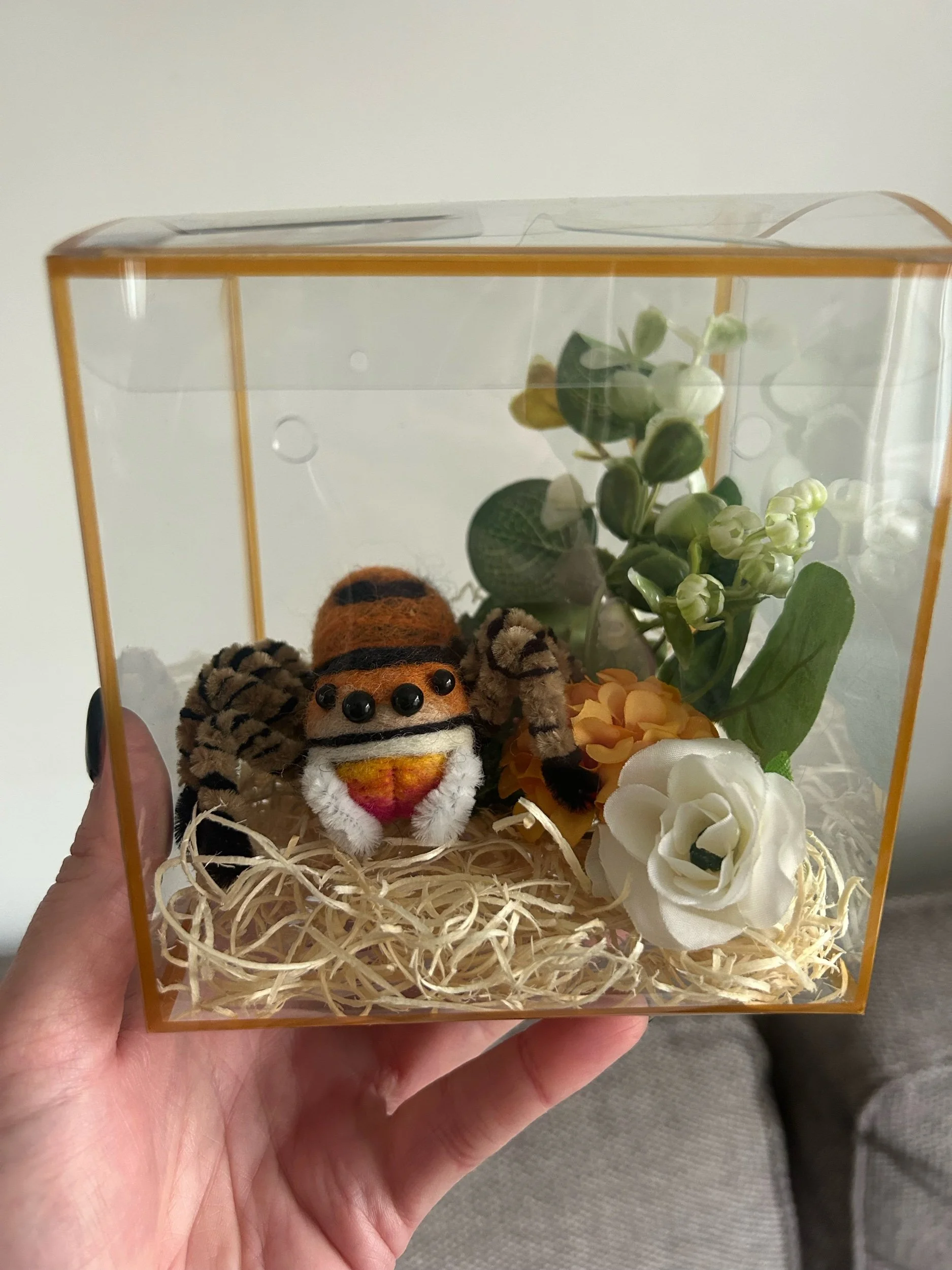 Each Spider comes with their very own, plastic faux enclosure for safe travels or to keep as part of a display if you wish!
