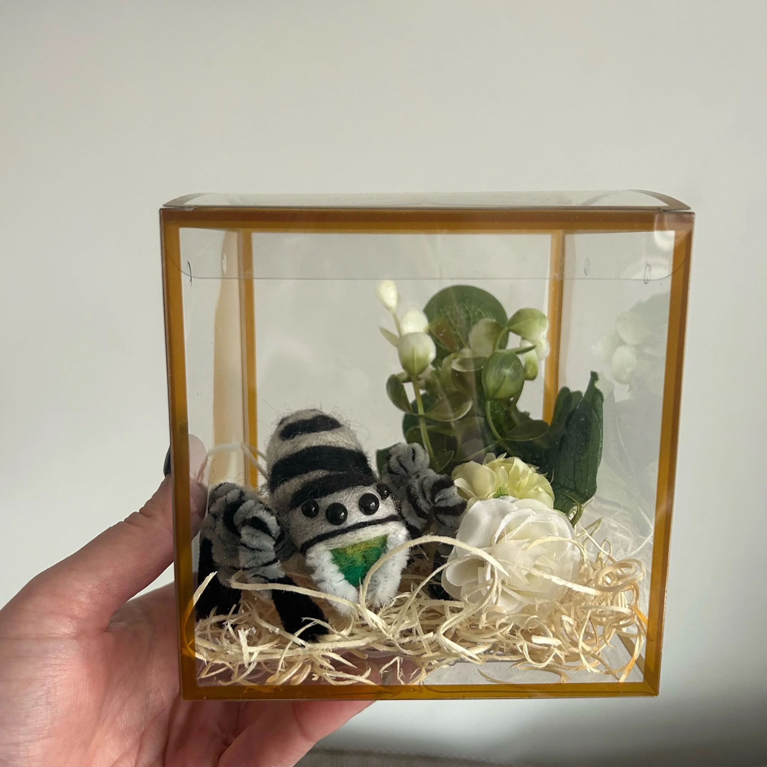 Each Spider comes with their very own, plastic faux enclosure for safe travels or to keep as part of a display if you wish!