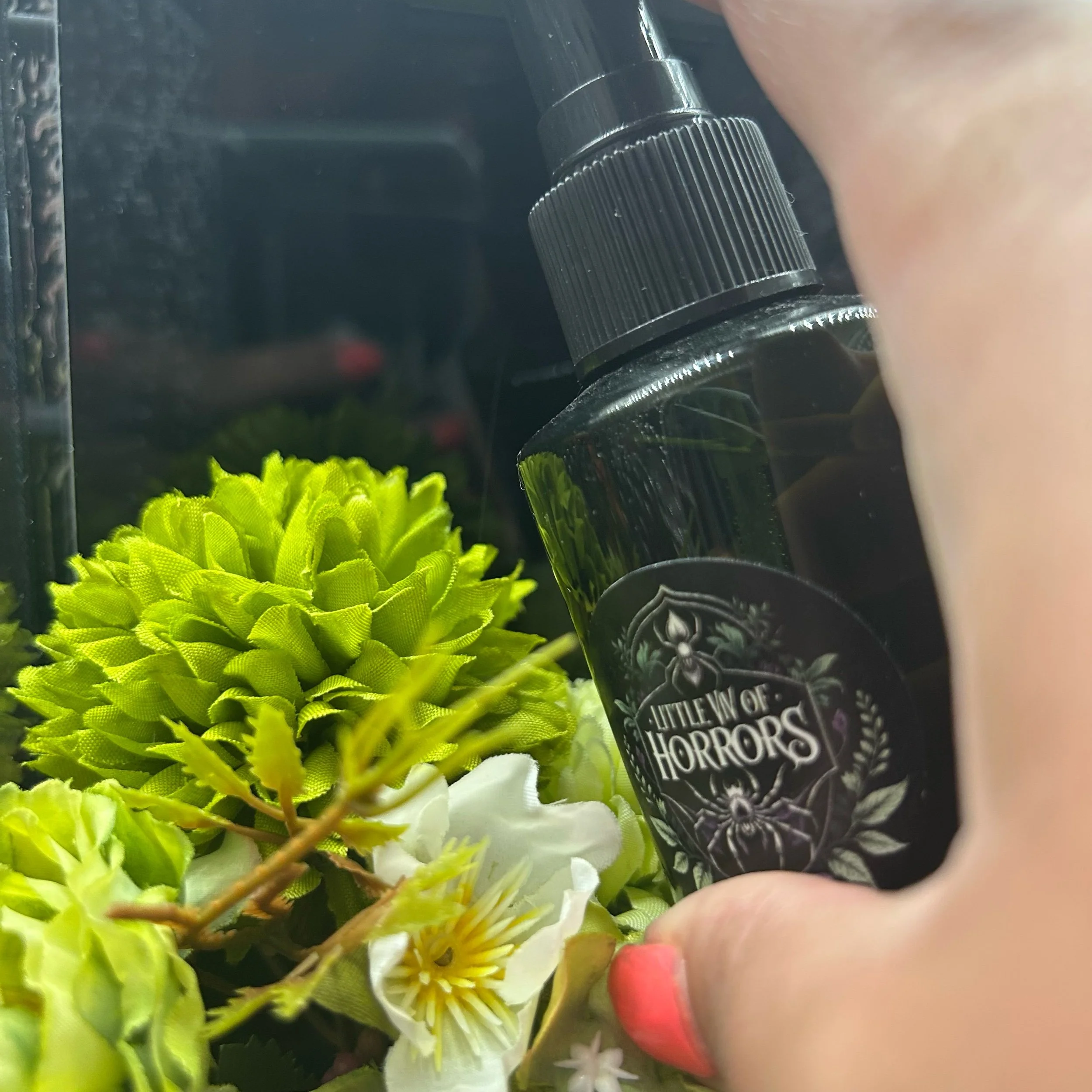 This listing is for 1 x dark green - Little Viv of Horrors fine mist 100ml spray bottle.